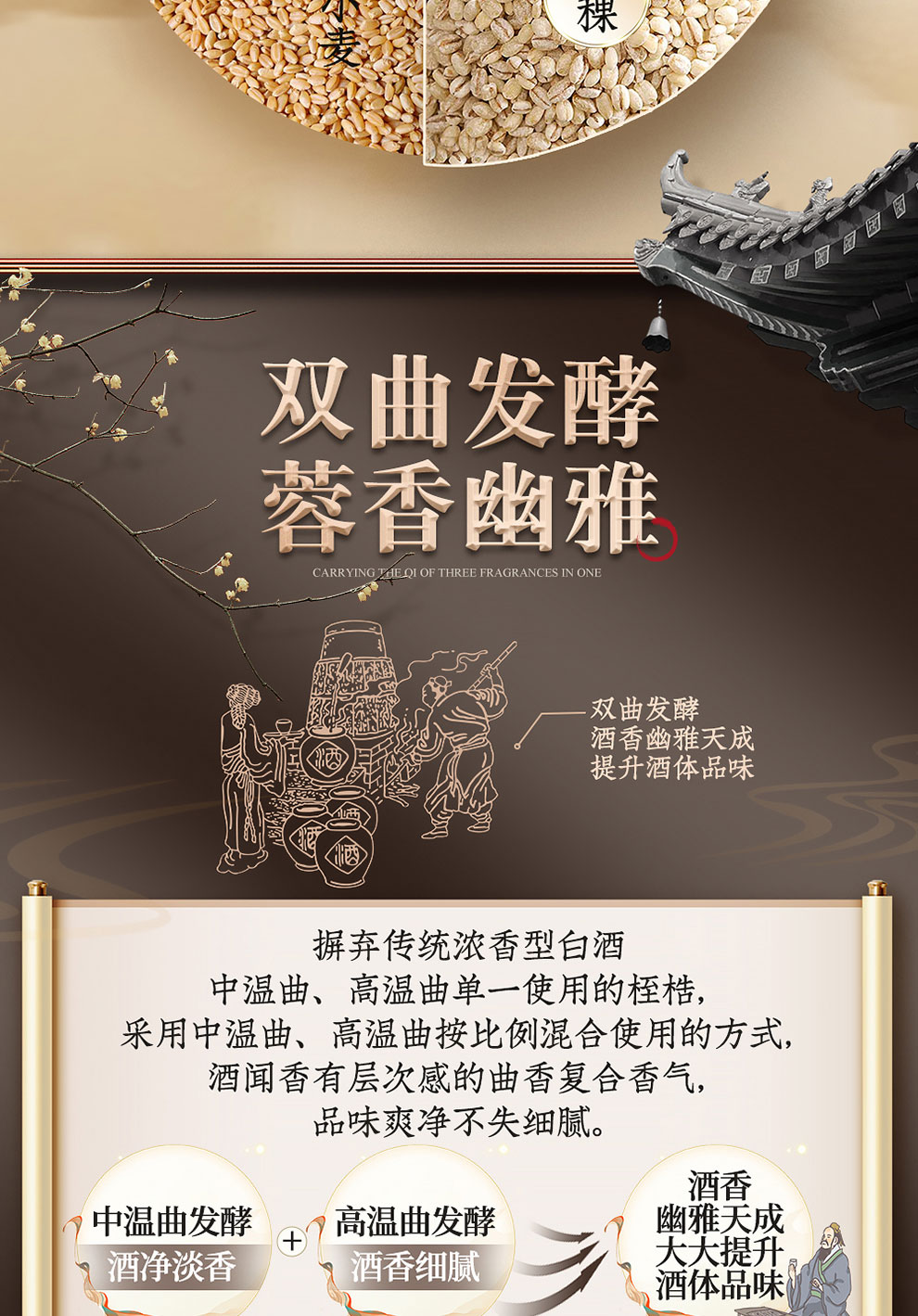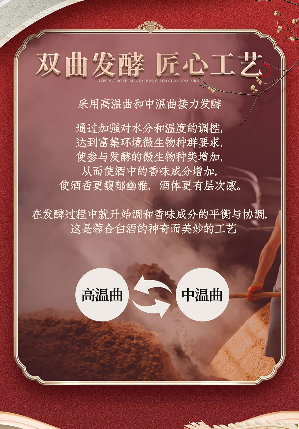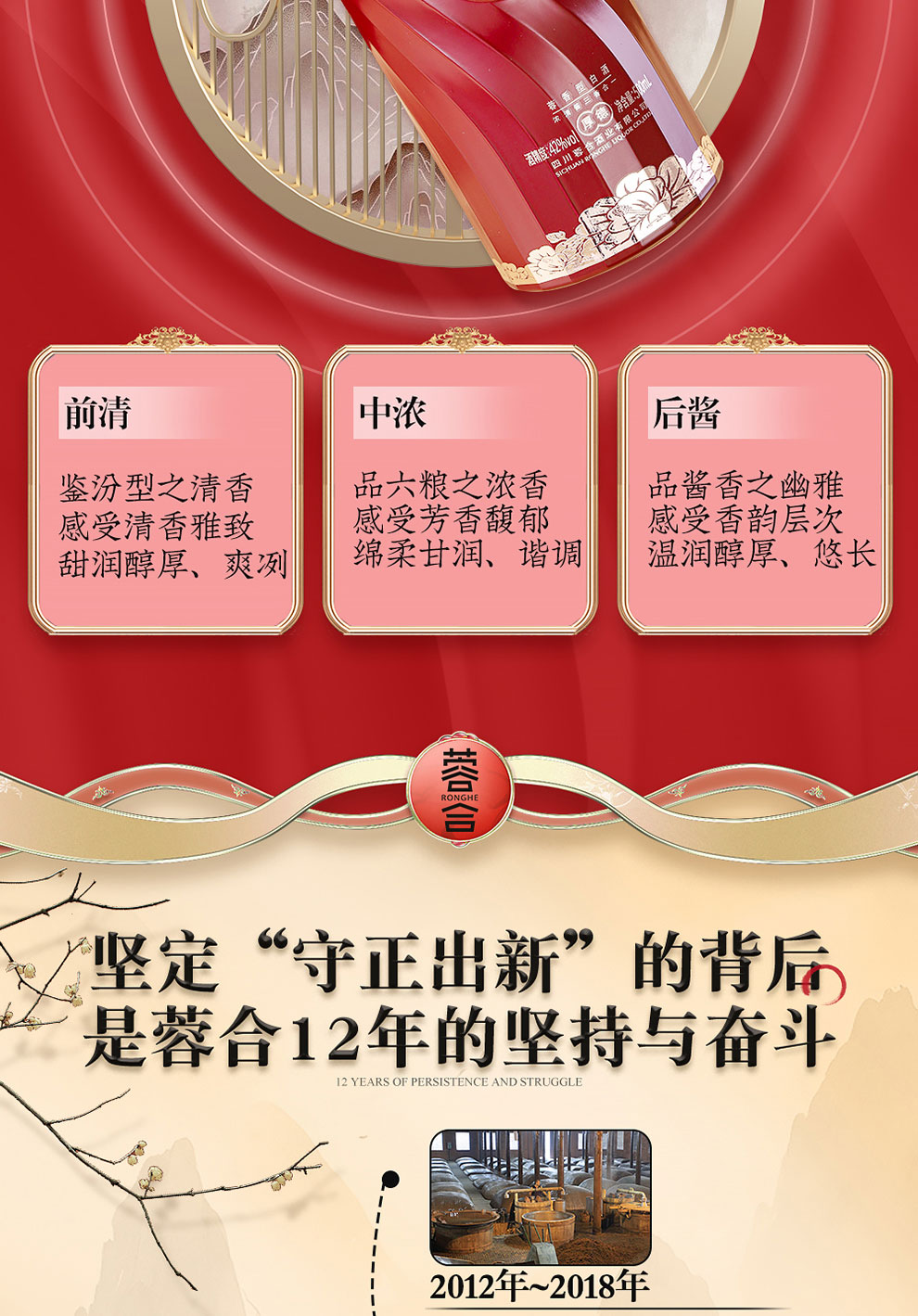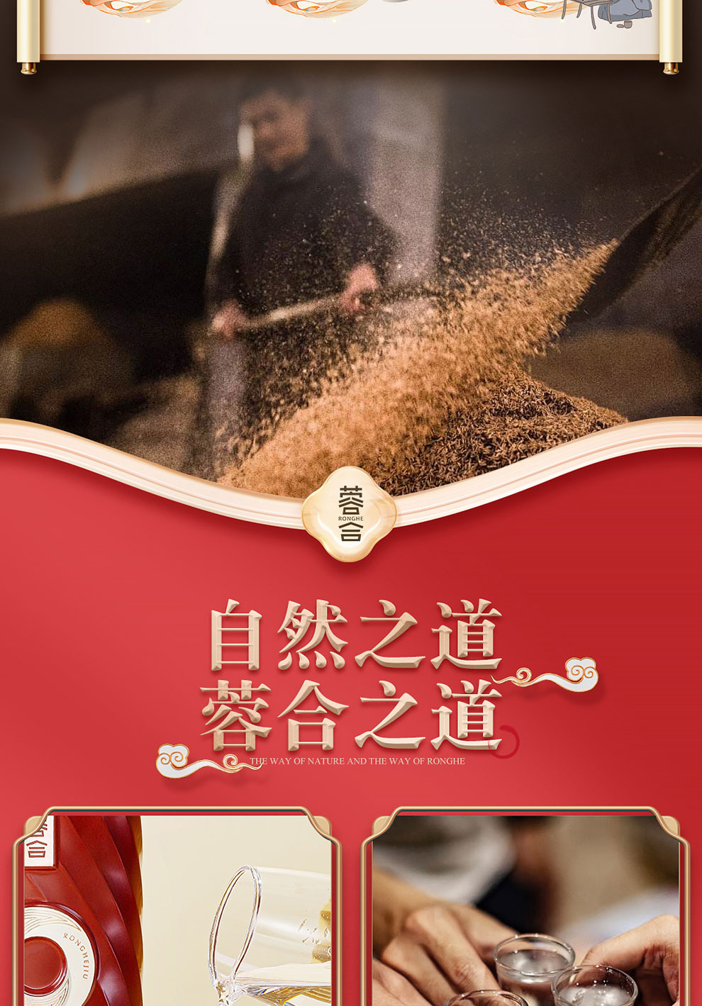 “蓉合”独特的超级视觉符号:蓉合三香环,其灵感来源于古老的金沙图腾太阳神鸟,以立体视觉述说浓清酱“三香合一”,在发酵过程中自然形成蓉香型白酒独特风格。蓉合莫比乌斯环:蓉合酿酒工艺传承与发展周而复始,生生不息。
